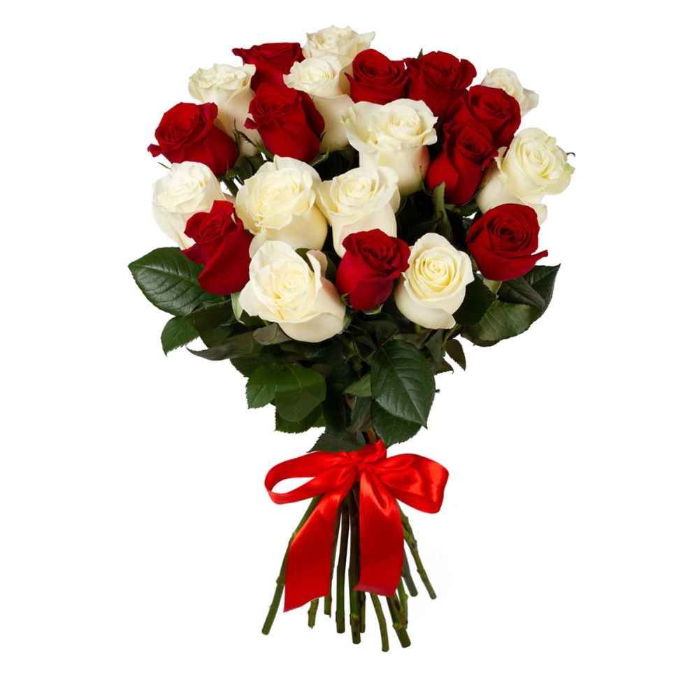 Сочетание красных и белых роз в одном букете создает удивительную гармонию.