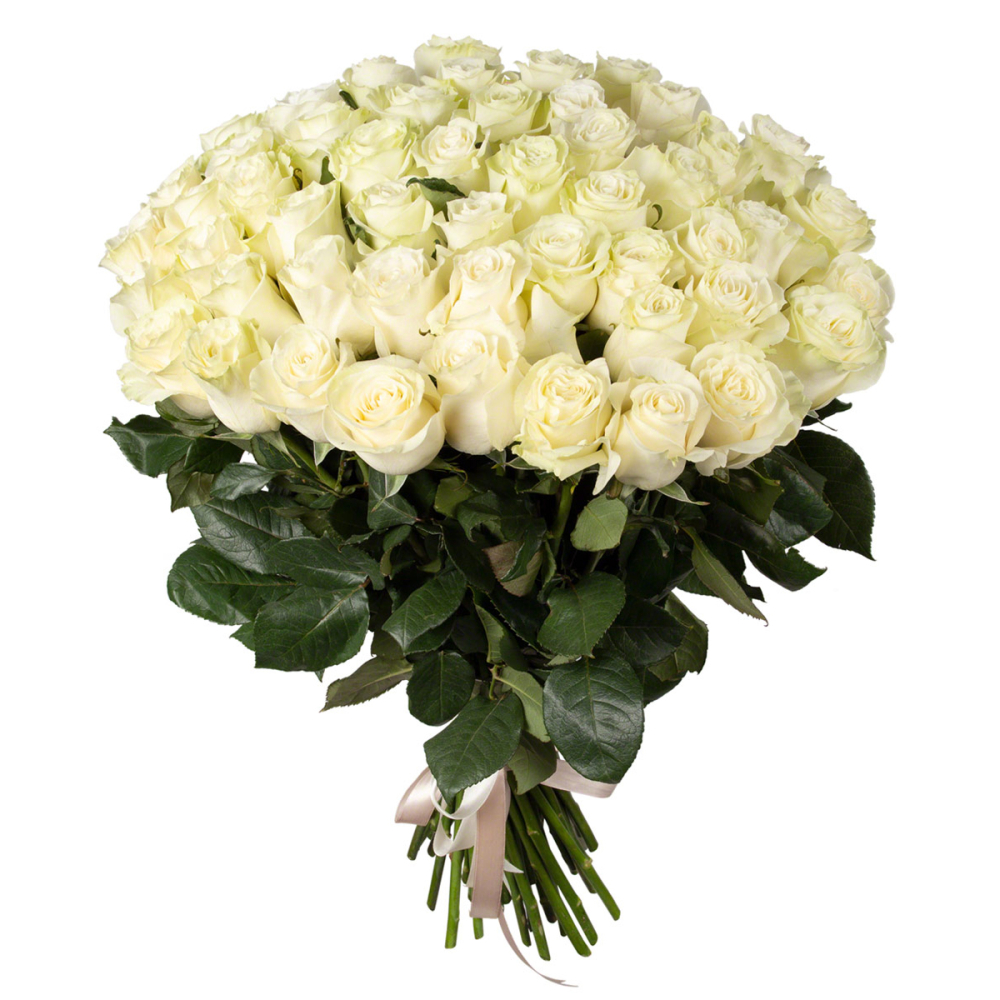 Изысканный букет из белоснежных роз — воплощение невинности и благородства.