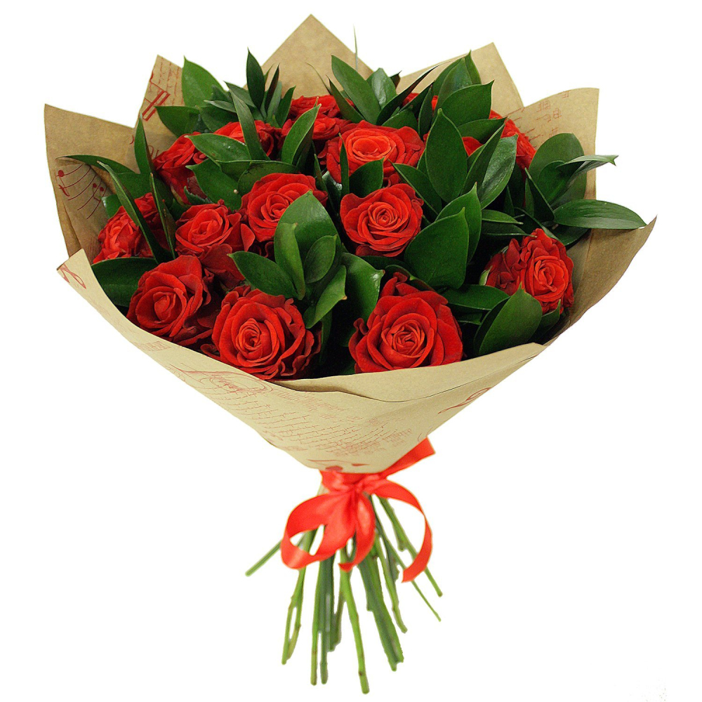 Букет «Фейерверк чувств» – 15 красных эквадорских роз для ярких признаний