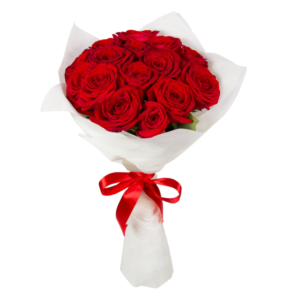 Букет из 15 красных роз в фетре