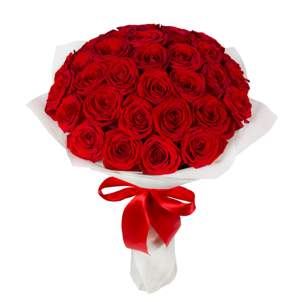 Букет из 35 красных роз в фетре