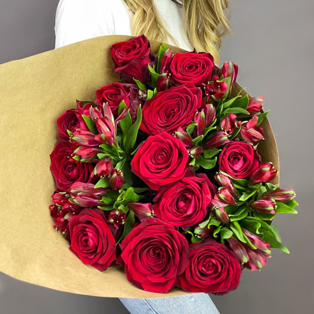 Элегантная композиция из 13 роскошных красных роз и 8 нежных альстромерий — идеальное сочетание страсти и преданности. Заказать букет цветов с доставкой в Цивильске.