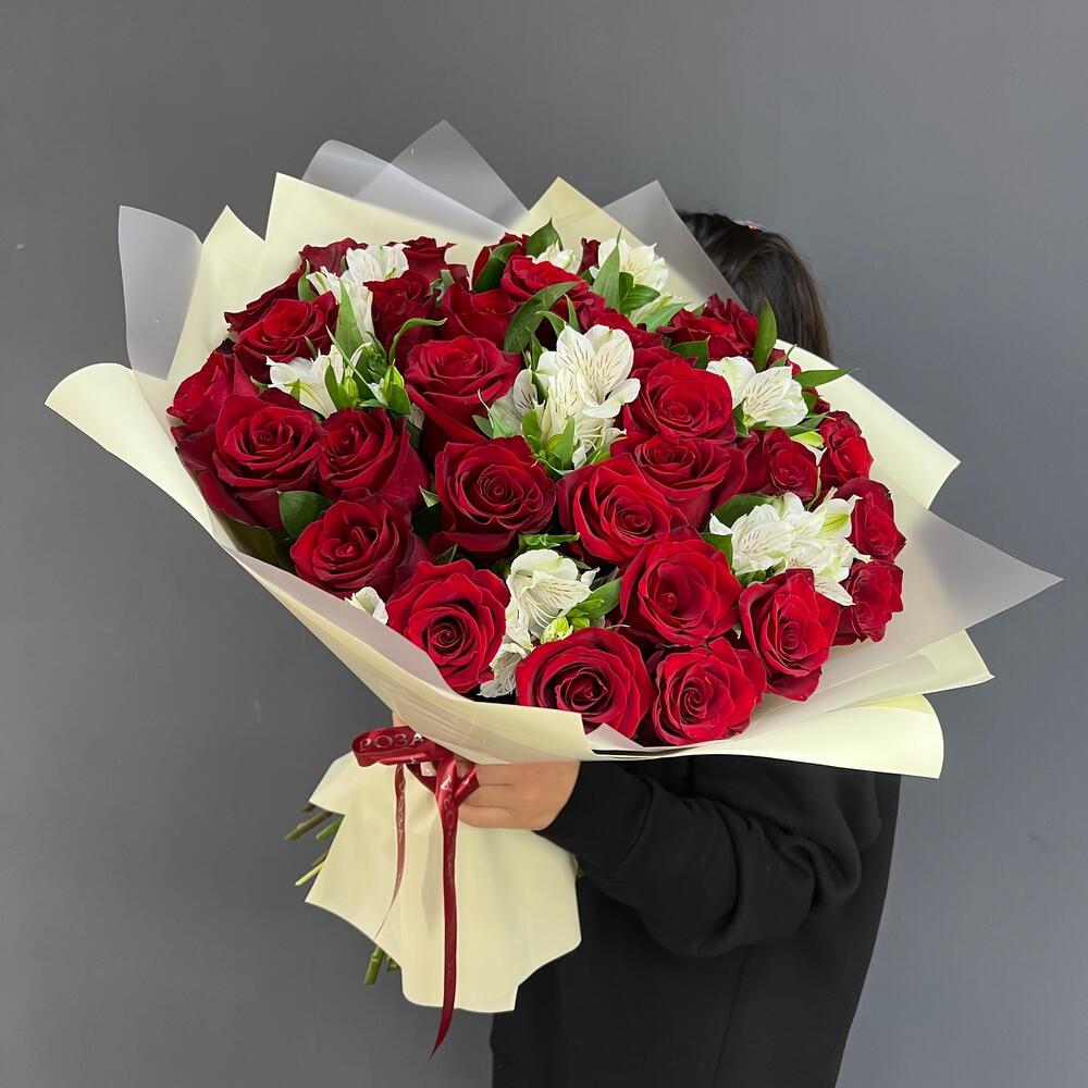 Волнующая композиция из алых роз и белоснежных альстромерий — воплощение совершенной любви. Идеальный выбор для романтического признания или годовщины отношений. Заказать букет цветов с доставкой в Цивильске.