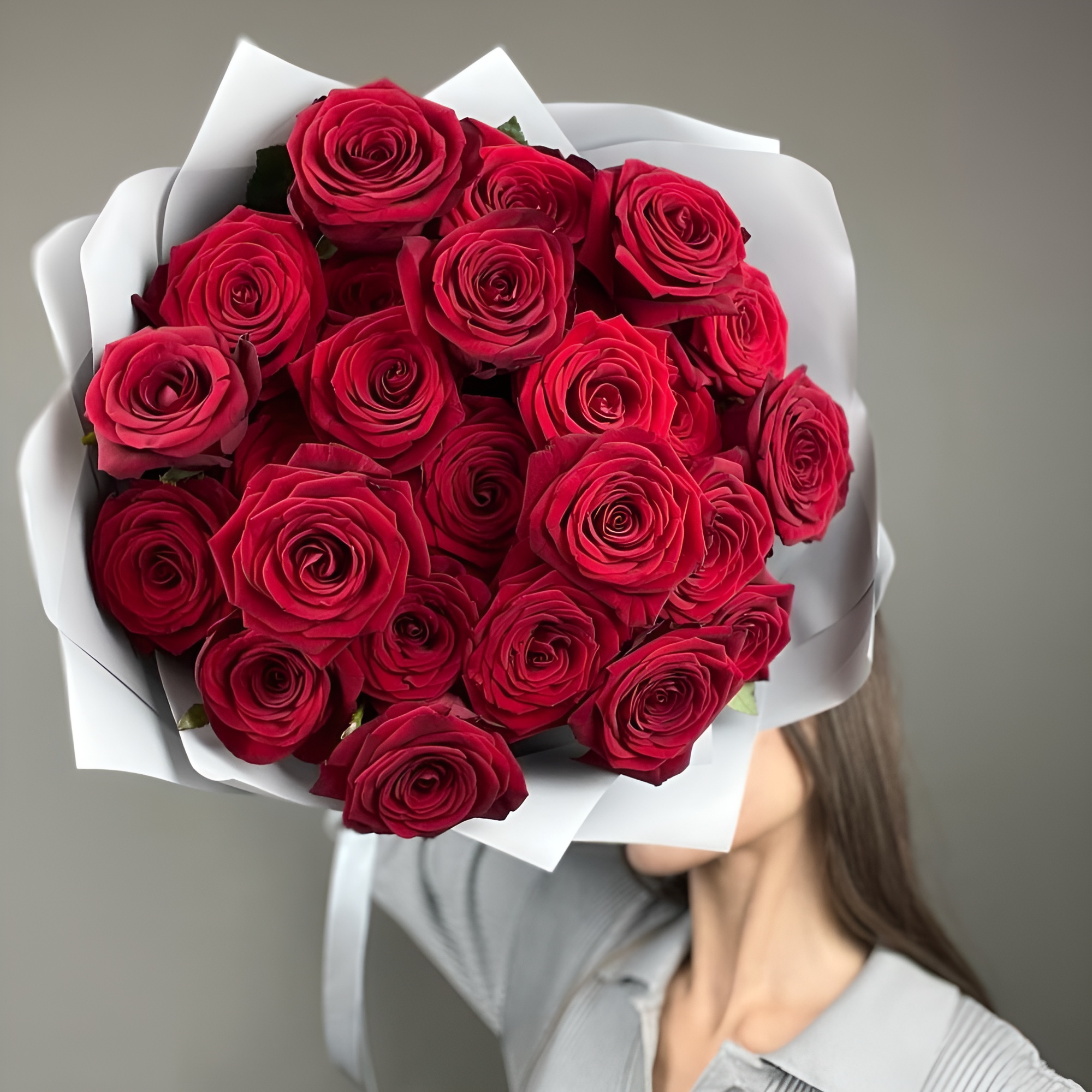 Изысканный букет из 25 роз красного оттенка с длиной стебля 60 см — воплощение королевской роскоши. Упакован в матовую плёнку с атласной лентой. Идеальный подарок для особых моментов. Купить букет роз Цивильск.