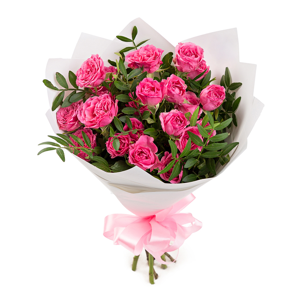 Букет из 5 розовых кустовых роз с фисташкой – нежность в каждом лепестке