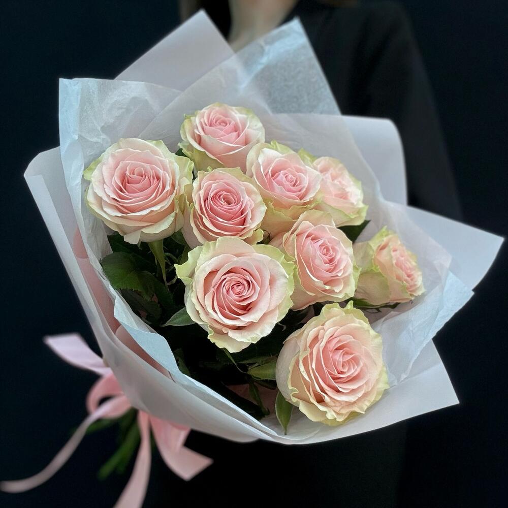 Нежный букет из 9 розовых роз — это элегантное выражение ваших искренних чувств. Свежие бутоны с бархатистыми лепестками пастельных оттенков станут идеальным подарком для любимого человека. Магазин цветов с доставкой.