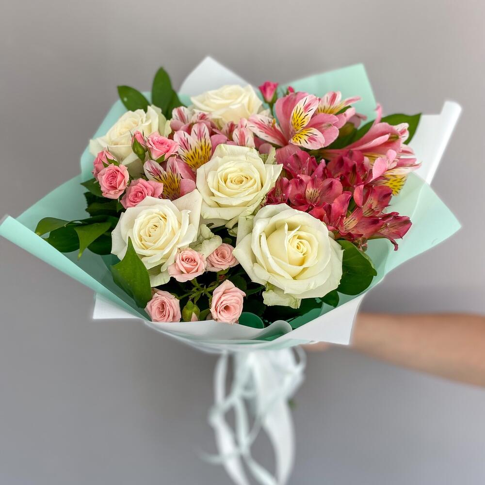 Букет «Николь» – изысканное сочетание роз, кустовых роз и альстромерий