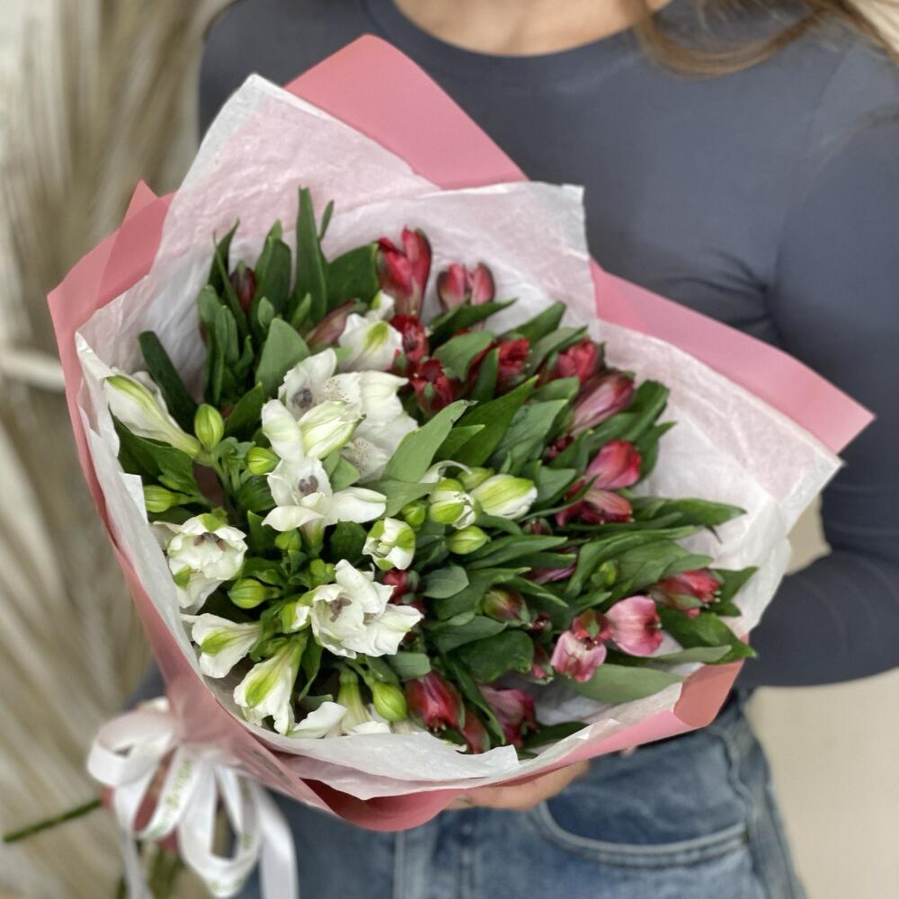 Яркий букет «Люблю» сочетает красные и белоснежные альстромерии — символ гармонии страсти и чистоты чувств. Эти удивительные цветы с узорчатыми лепестками расскажут о вашей любви лучше любых слов. Идеальный выбор для признания, годовщины или романтического сюрприза. Доставка альстромерий в Цивильске.