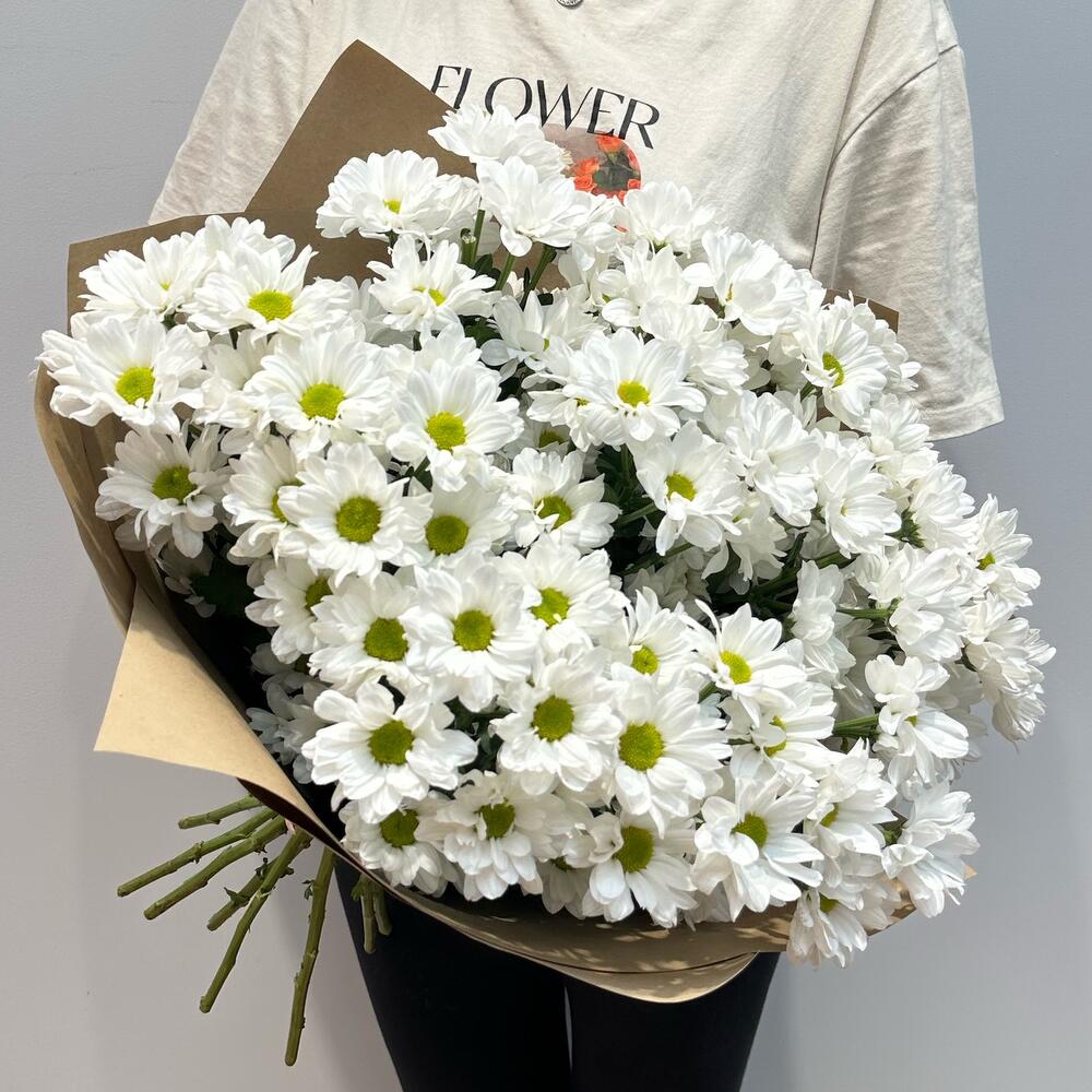 Букет «Ромашковое поле» – свежесть белых хризантем