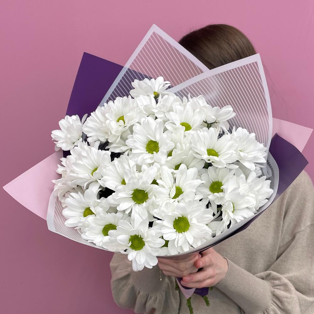 Букет «Весеннее настроение» – свежесть белых хризантем