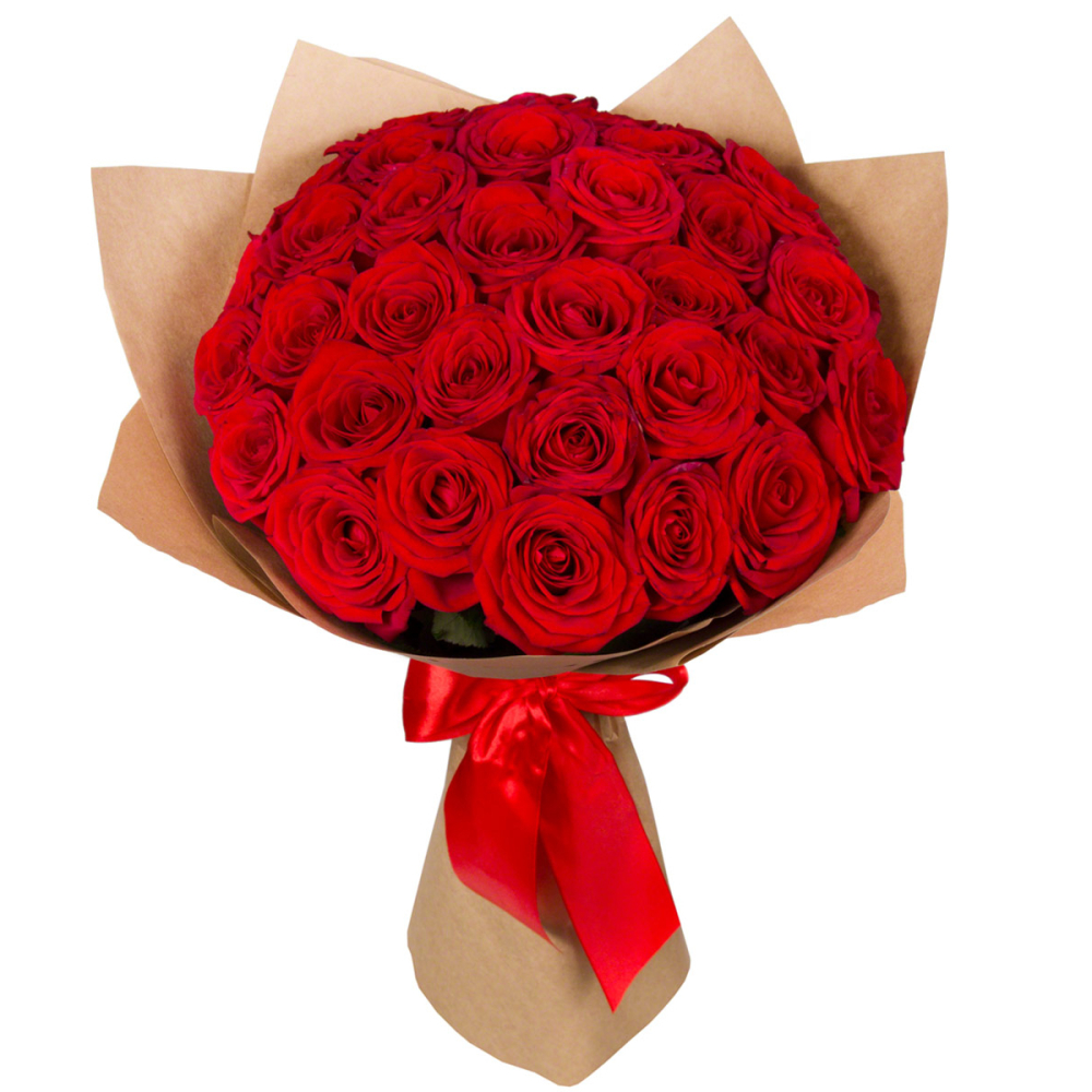 Букет из 35 красных роз в крафт-бумаге
